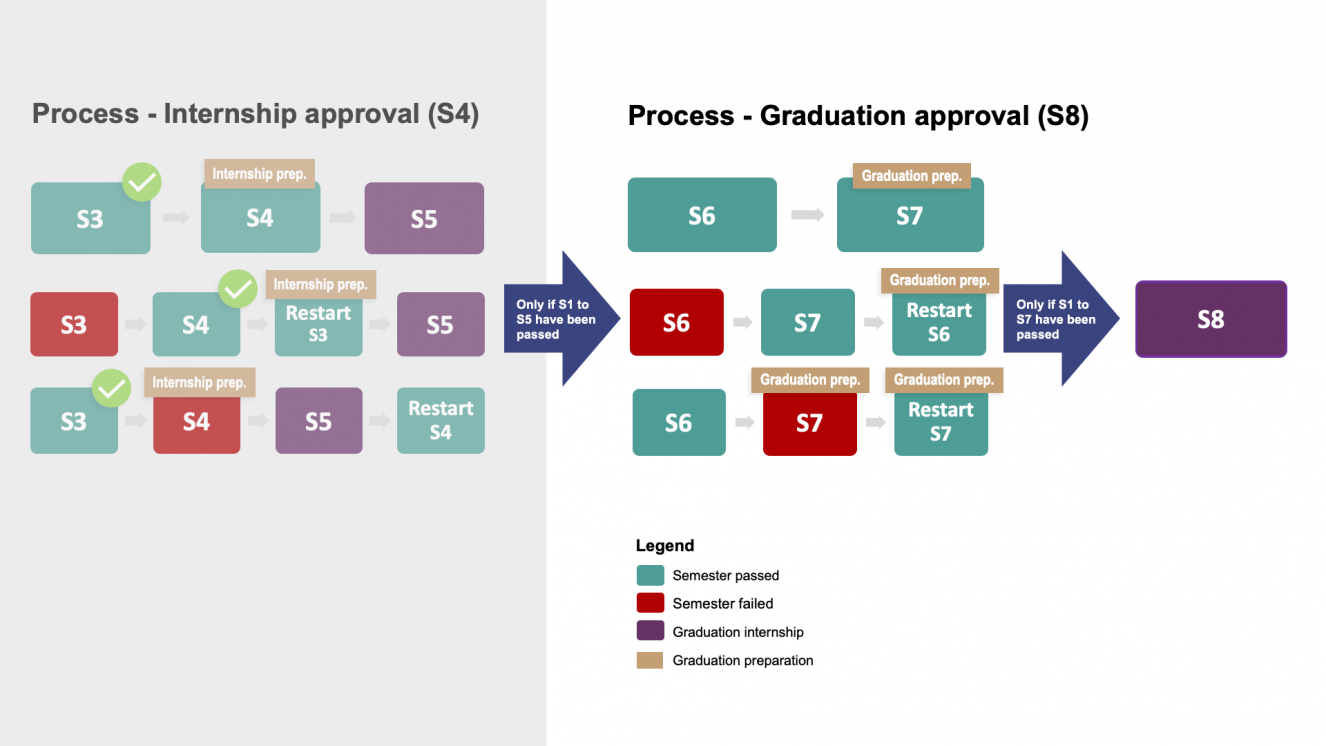 In this semester there are professional and job specific learning outcomes. You prepare to graduate and in this semester you will execute your graduation assignment. Your focus will be divided to 40% of gaining knowledge and skills in order to execute the job of your choice, and 60% will contain your graduation assignment that takes place within a company.